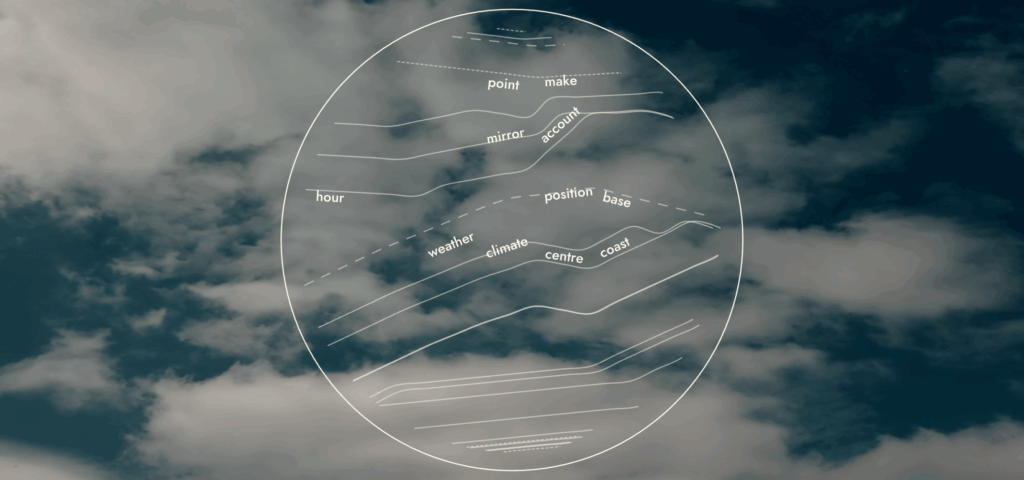 Alongside these soundings I have been conducting another small project of my own - Nephoscope. Named after 19th century instruments for measuring the movements of clouds, my digital equivalent analyses these movements using the camera in my phone, using the data to then generate a form of poetry over the video feed. I like this idea of these two electronic instruments, satellite and nephoscope, working together to map and articulate the atmosphere along two different registers, and at two very different scales.
